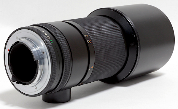レンズ構成:5群5枚 フィルターサイズ 82mm最短撮影距離:3.5m レンズフード:内蔵スライド式 全長:205mm 最大径:88mm重さ:1.2kg
