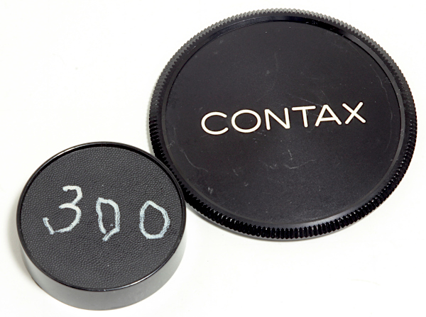 *CONTAX K-83 82mmねじ込み式前キャップ、CONTAXリヤキャップ(手書きで300の数字あり)付 *前玉表面にカビ痕*外観すり傷・すれ傷