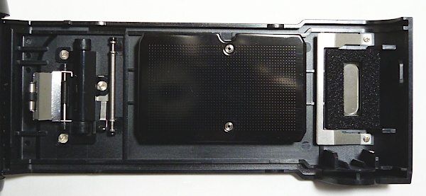 巻き戻しポタンロック解除レバーと巻き戻しポタンの操作でモーターで自動巻戻し(36枚撮りで約26秒) |