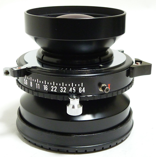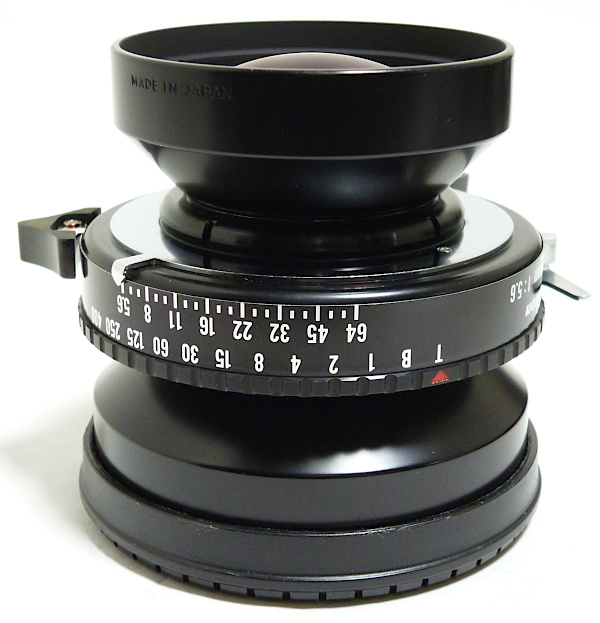 レンズ構成:4群6枚イメージサークル:295mm 包括角度:70°フランジバック:207mm 最大適用画面寸法:8ッ切(158x210mm)フィルター径:67mm 後枠外径:60mm全長:69mm 重さ:460g