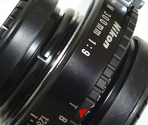 NIKKOR-M 300mm f 9 No.800*** *前後キャップ付*外観少しすり傷・すれ傷 レンズ構成:3群4枚 イメージサークル:312mm(f9),325mm(f22)フランジバック:290mm 包括角度:55°(f9),57°(f22) 最大適用画面寸法:8x10フィルター径:52mm 後枠外径:42mm全長:43mm 重さ:290g