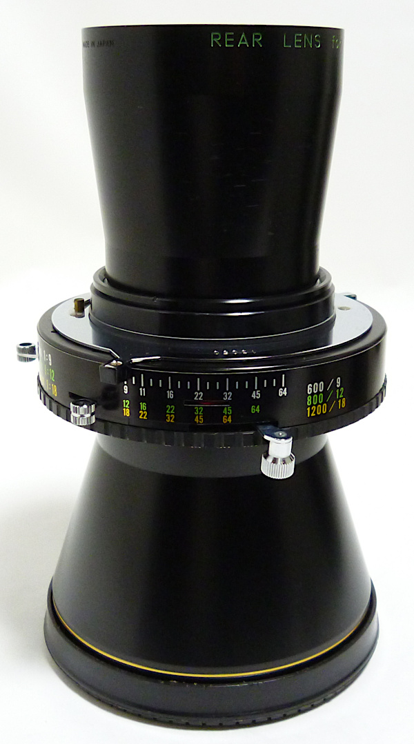 レンズ構成:5群7枚 イメージサークル:310mm 最大適用画面寸法:8x10(アオリなしで) 包括角度:22° フランジバック:527.4mm フィルター径:95mm 後枠外径:70mm全長:176.5mm 重さ:1600g
