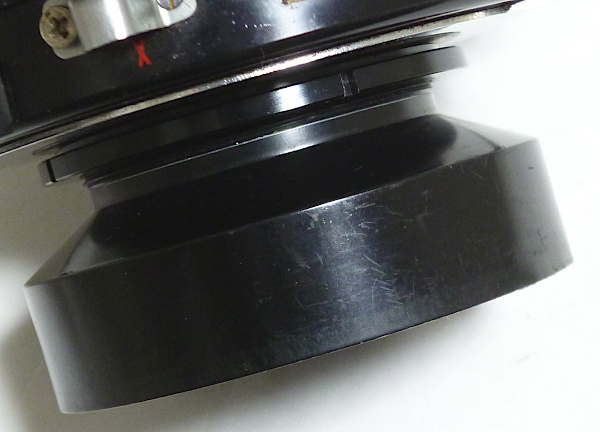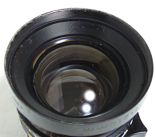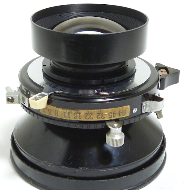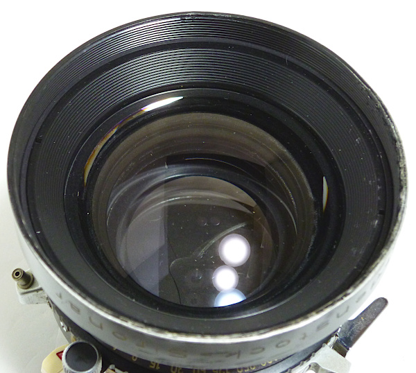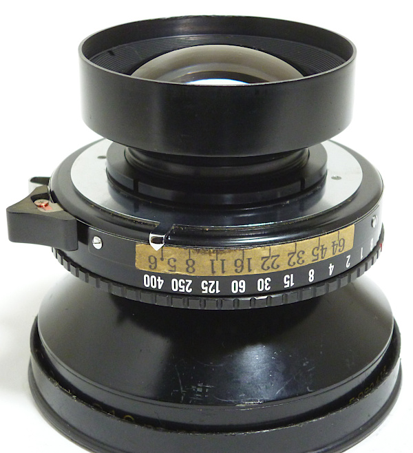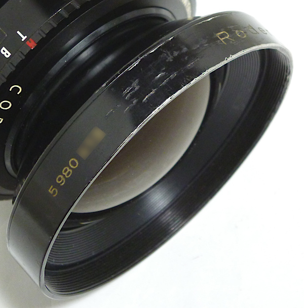 No.5980*** *シュナイダー製前キャップ, ローデンシュトック製後キャップ付 *外観すり傷・すれ傷多い *前玉外枠少し当たり傷 *前玉バルサム切れあり *後玉外枠少し凹み *後玉の内面反射防止塗装劣化 *絞りスケール自作 *シンクロ接点上向きに交換済みで、止めネジが1つ+ネジ *シャッター羽根にすれ傷(?) *絞り羽根に少し油