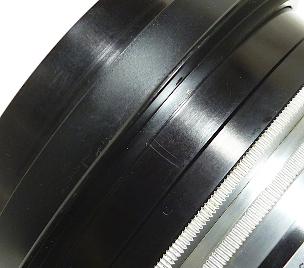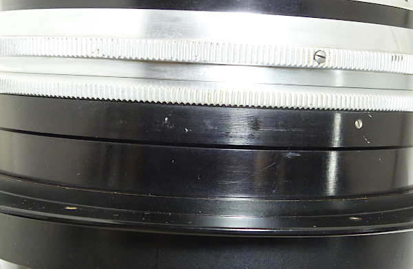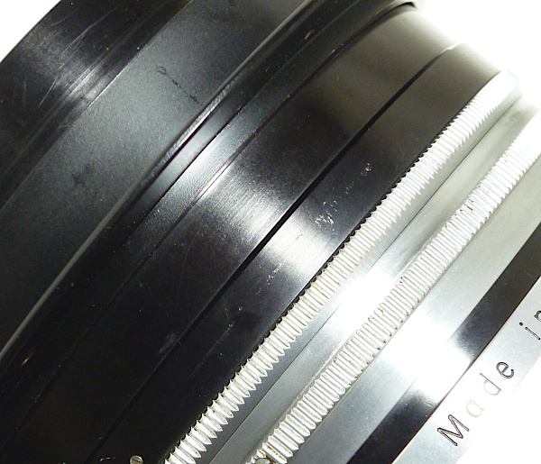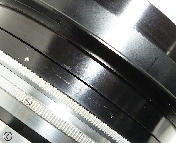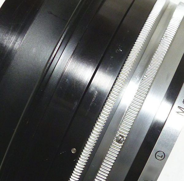 405mm(16in.) f 4.5 No.RY*** *前キャップ(傷・凹みあり)付 *外観すり傷・すれ傷 *レンズ表面すれ傷 *取付けリング(7つの小さな穴が開いている一番外側のリング)を、 動かす(回す)ことができませんでした。 *絞り操作リングの動きは、4.5→22への動きは特に固い感じは ありませんが、22→4.5へと戻す時に、5.6→4.5の付近で 少し固くなります。 全長:約89mm 前枠外径:約126mm 後玉外径:約120mm 最大径:約160mm 現状渡し 特価 198,000 (税込) |