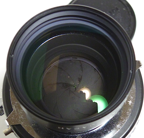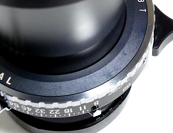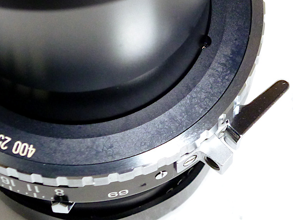 T 400mm f 8 No.691*** 5群5枚構成 前後キャップ付 *鏡胴先端傷あり *シャッタースピード文字盤にカビ痕 *後側の絞り羽根に少し油 4x5判の望遠レンズとして素直なパースペクティブが 得られるTタイプの代表的なレンズ。長焦点でありながら 蛇腹の伸びが短いため、蛇腹の伸びに制約のある フィールドカメラには欠かせないレンズ。