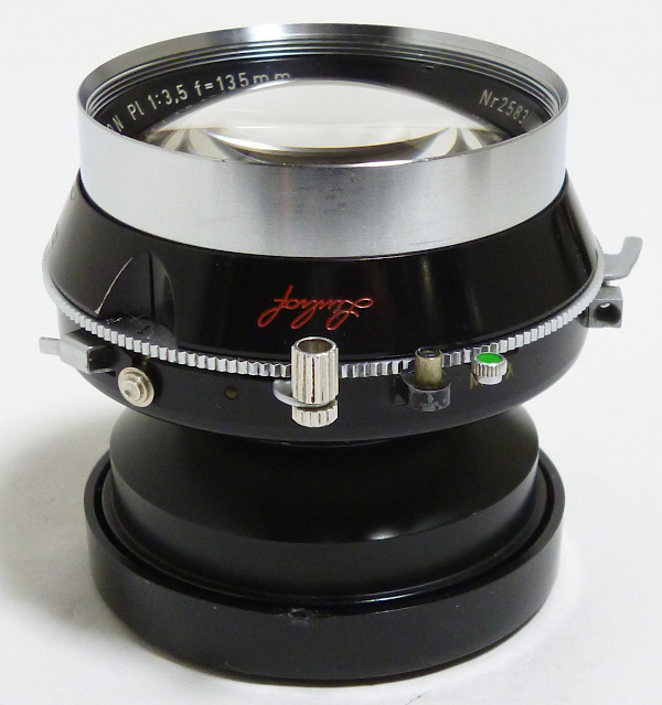 Oberkochen OPTON Pl 135mm f3.5 No.2583*** *リンホフ刻印付 *FUJINON製前後キャップ付 *外観すり傷・すれ傷 *前玉表面少し傷あり *後玉外枠少し当たり気味 *1秒と1/2は遅く(長い)、1秒は途中で止まる時あり *1/5は1/2、1/10は1/8、1/25は1/10、1/50は1/25、 1/100は1/60、1/200は1/100、1/400は1/250相当 全長:約64mm 最大径:約78mm 前玉外径:60mm 後玉外径:60mm 重さ:約430g 現状渡し 特価 278,000 (税込) |