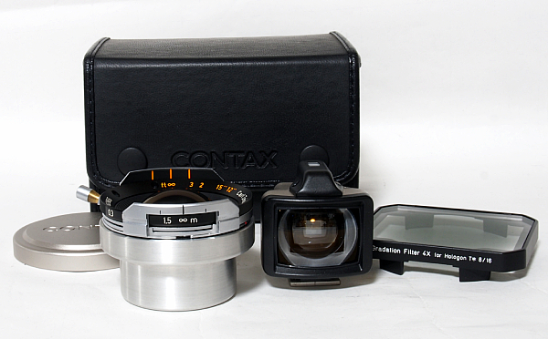 ホロゴン 16mm f 8.0 T* No.7762*** ファインダー GF-16mm グラデーションフィルター 4x 専用ケース付 カールツァイス独自の設計により画角が106度とゆう 超広角レンズでありながら ディストーション(歪曲)を ほぼ完璧に補正 同時に高いコントラスト再現性を実現 超広角レンズのため 撮影は水準器内蔵の専用ファインダーを使用 周辺光量の低下が大きいため グラデーションフィルターで補正して撮影 レンズ構成 3群5枚 最短撮影距離 0.3m 絞り 固定絞り 距離計非連動 重さ 125g 極上品 特価 238,000 (税込) |