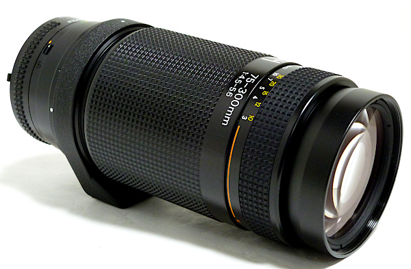 直進式ズームレンズAF NIKKOR 75-300mm f4.5-5.6 No.373*** *鏡胴すれ傷,レンズ内部チリあり レンズ構成:11群13枚 フィルター径:62mm最短撮影距離:3m マクロ:1.5m 全長:約174mm(75mm時) 重さ:850g