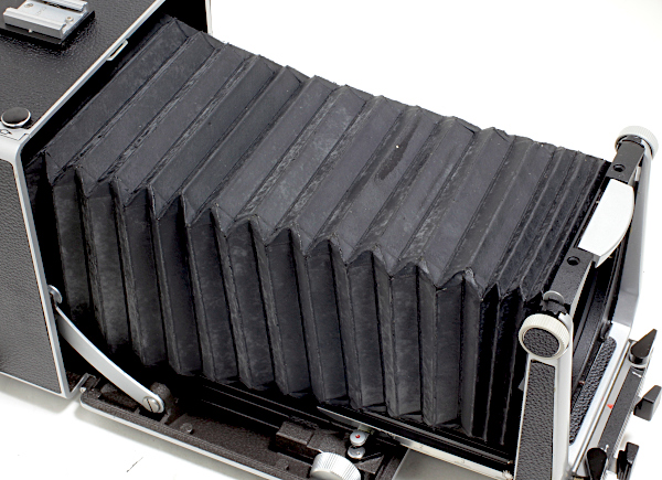 No.C542*** 元箱付 *保管状態が悪かったのか、1枚目・2枚目の画像のように 蛇腹の劣化が酷く、蛇腹は全体的に光線漏れしています。 *フォーカシングのロックができません。ロックレバーを動かしても、 フォーカシングノブは動きます。フォーカシング自体は少し軽めです。 *シフト操作時、真鍮色のパーツが残ります。押せば中に戻りますが、 センター位置が微妙にずれる場合があります。(3枚目/4枚目の画像) *前枠部(フロント支柱)の止まり(ロック)が弱く、指で押すと奥に戻ります。 *少しすり傷と、所々に革浮きがあります。 *ピントガラスの裏面に汚れあります。 *レンズボードの上側の受けの部分が、内側にほんの少し膨らんでいて、 従来のレンズボードがきちんと嵌まらない場合があるので注意が必要。 現状渡し 特価 178,000 (税込)