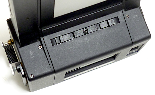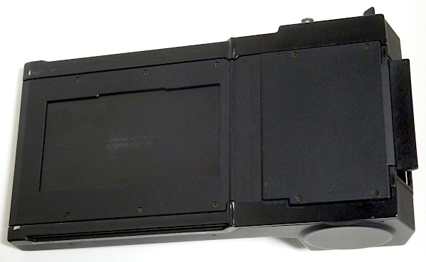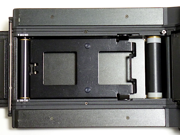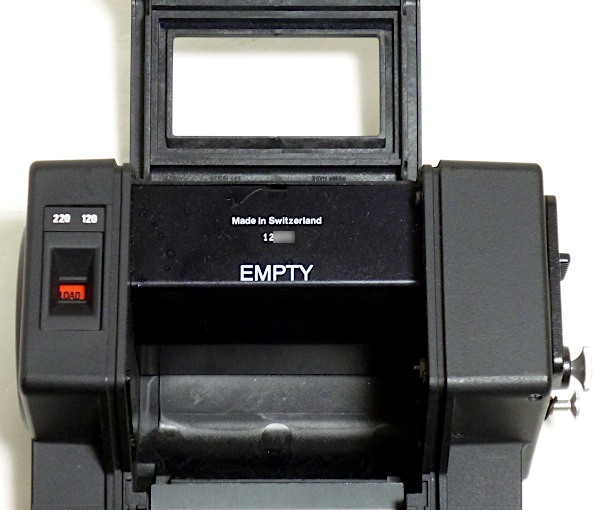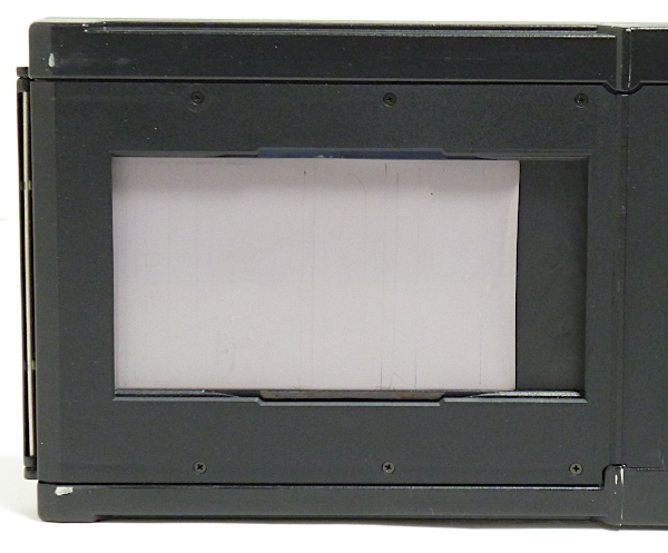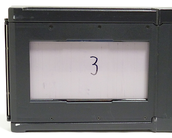 567.35 panorama フィルムホルダー(6x12) No.12*** *差込み式で120/220兼用のロールフィルムホルダー *画面サイズは6x12cm(56x112mm) *外観すり傷・すれ傷あり *loadとexpの切替えレバー欠損 現状渡し 特価 39,800 (税込) *loadとexpの切替えレバーが欠損していますが、フィルム送りは可能。 (120フィルムで確認しました。expの位置で止まったままと思われます。) *ただし、フィルムをセットしてスタートマークを合せて巻上げて 止まった位置は、1枚目の手前になったりします。(1番目の画像) *2番目の画像は、1番目の画像の状態から、ロックを解除して巻上げレバーを 止まるまで動かした時の画像です。1コマ目はきちんと写りません。 本来ならパノラマホルダーは6枚撮りですが、このパノラマホルダーに 関しては5枚撮りとなります。1コマ目はないものとお考え下さい。 *3番目と4番目の画像が、2コマ目と3コマ目となります。5番目の画像は、 3コマ目のカウンターの数字です。 *6番目の画像は6コマ目を巻上げて、巻上げレバーが止まった時の画像です。 これ以降も1コマずつしか巻上げできません。他のロールホルダーのように、 撮影が終わったら巻上げレバーがフリーになって、フィルムの残りの部分を 全部巻き取ることはできません。ある程度は面倒でも1コマずつ 巻上げレバーを動かす必要があります。 *220フィルムでの動作確認はしていません。 *蓋のロックはワンタッチではありません。 自分でロックレバー(つまみの部分)を動かす必要があります。 |