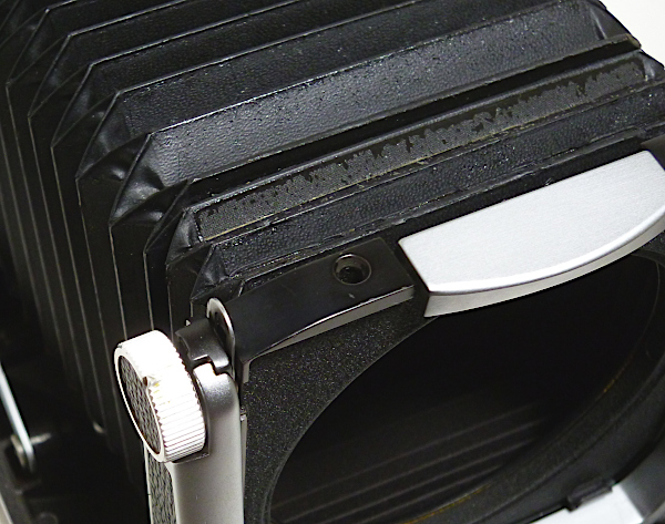 距離計付 No.6451*** *下の画像の1枚目と2枚目のように、 蛇腹は全体的に光線漏れしています *日本製テヒニカ用交換用蛇腹付 *傷・メッキ剥がれ・塗装剥がれ・革浮き・革縮みあり *前枠部の止まり(ロック)が弱く、指で押すと奥に戻ります *カム調整時、距離スケールをセットするプラスチック製のパーツが欠品 現状渡し 特価 128,000 (税込)