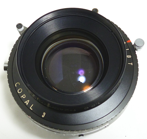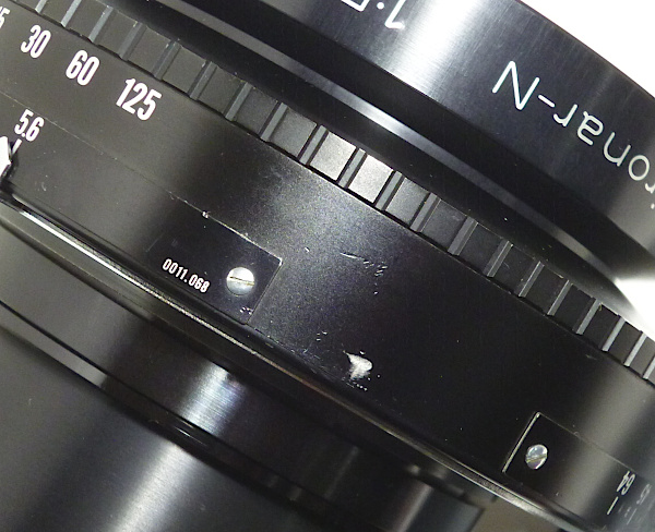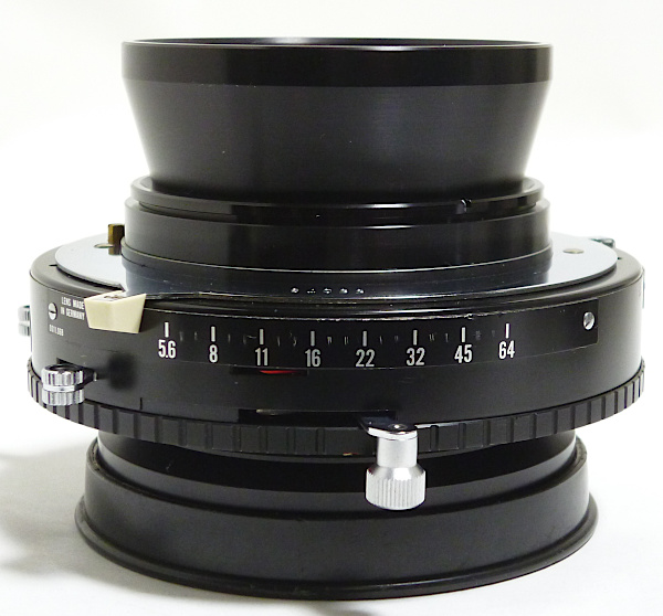 No.10086*** *前後キャップ付 *外観すり傷・すれ傷 *シャッターチャージレバー側の絞りスケールに、 手書きで、1/3目盛りあり レンズ構成:4群6枚 フィルター径:77mm イメージサークル:350mmφ フランジバック:231mm 適用フィルムサイズ:8x10 全長:77mm 最大径:約113mm 前玉外径:80mm 後玉外径:70mm 重さ:810g 良品 特価 77,800 (税込) |