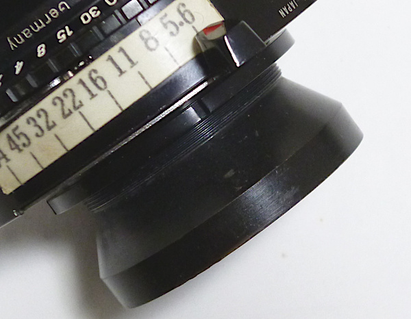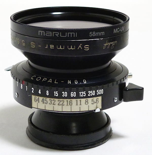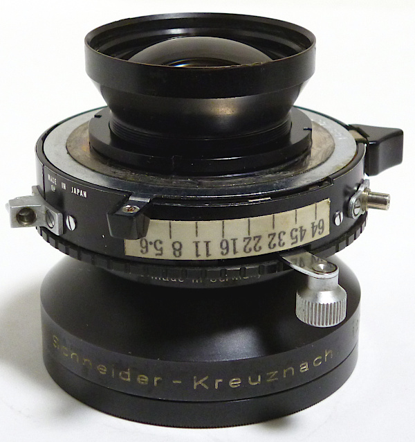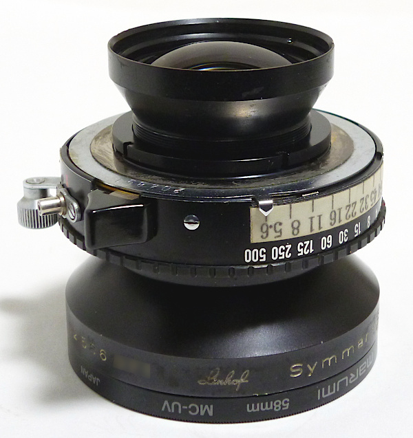 No.12566*** Linhof刻印付 4群6枚構成 *COPAL No.0シャッター,自作絞りスケール付 *社外品前キャップ,シュナイダー後キャップ, マルミ58mm MC-UVフィルター付 *前玉の内面反射防止塗装劣化 *後玉の内面反射防止塗装少し劣化と内部くもり *後玉表面にすり傷と分解跡あり イメージサークル:210mm(f22) 包括角度:70° フランジバック:143.5mm 最大適用画面寸法:4x5 フィルター径:58mm 後枠外径:40.5mm 全長:55mm 重さ:251g 現状渡し 特価 27,800 (税込) |