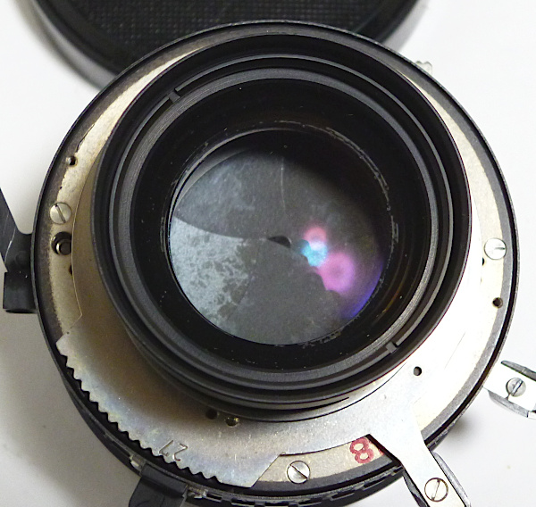 No.14080*** Linhof刻印付 4群6枚構成 *COMPUR 0番シャッター付 *フジノン前キャップ,シュナイダー後キャップ付 *シャッター羽根カビ痕あり *前後共内面反射防止塗装劣化 *後玉内部くもり(コーティング劣化?)あり イメージサークル:210mm(f22) 包括角度:70° フランジバック:143.5mm 最大適用画面寸法:4x5 フィルター径:58mm 後枠外径:40.5mm 全長:55mm 重さ:約215g 現状渡し 特価 29,800 (税込) |